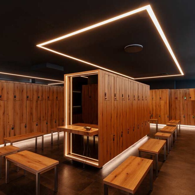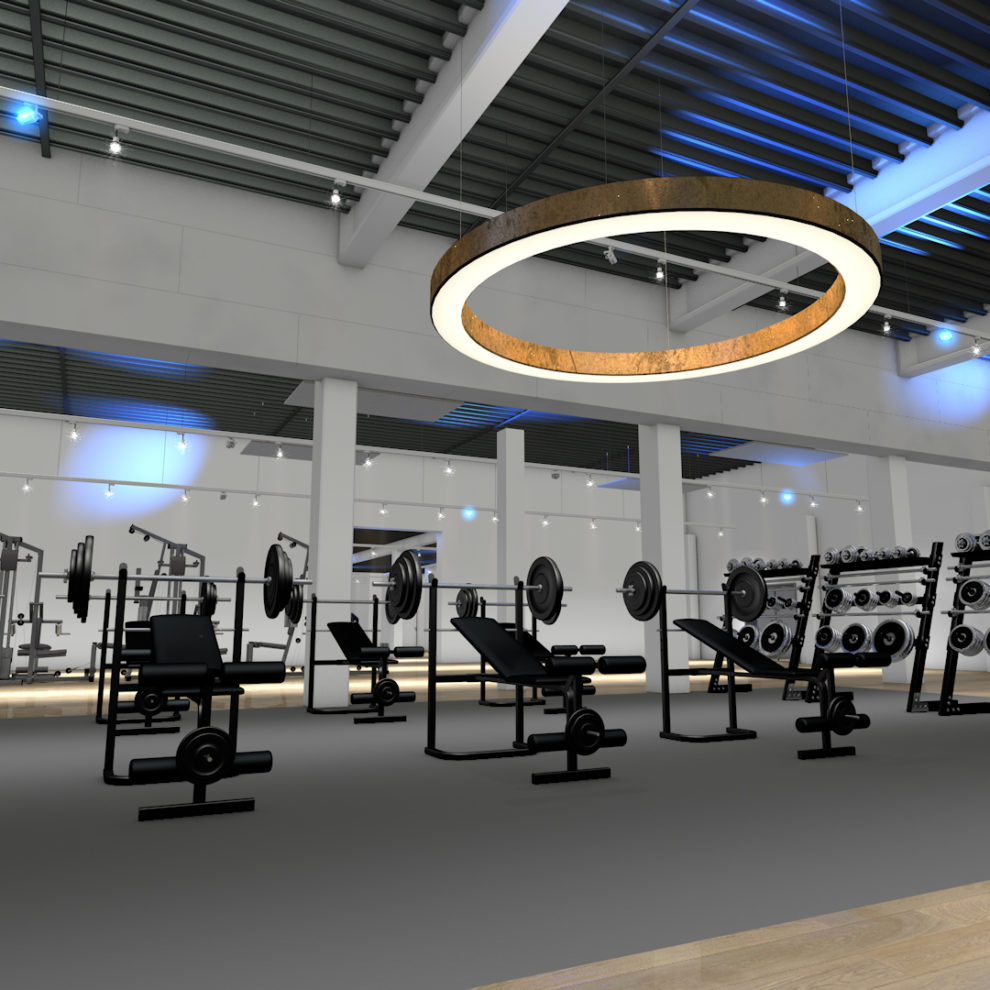 Ein gut beleuchtetes Fitnessstudio ist entscheidend für eine angenehme Trainingsatmosphäre und kann die Motivation der Sportler und Mitarbeitenden steigern.