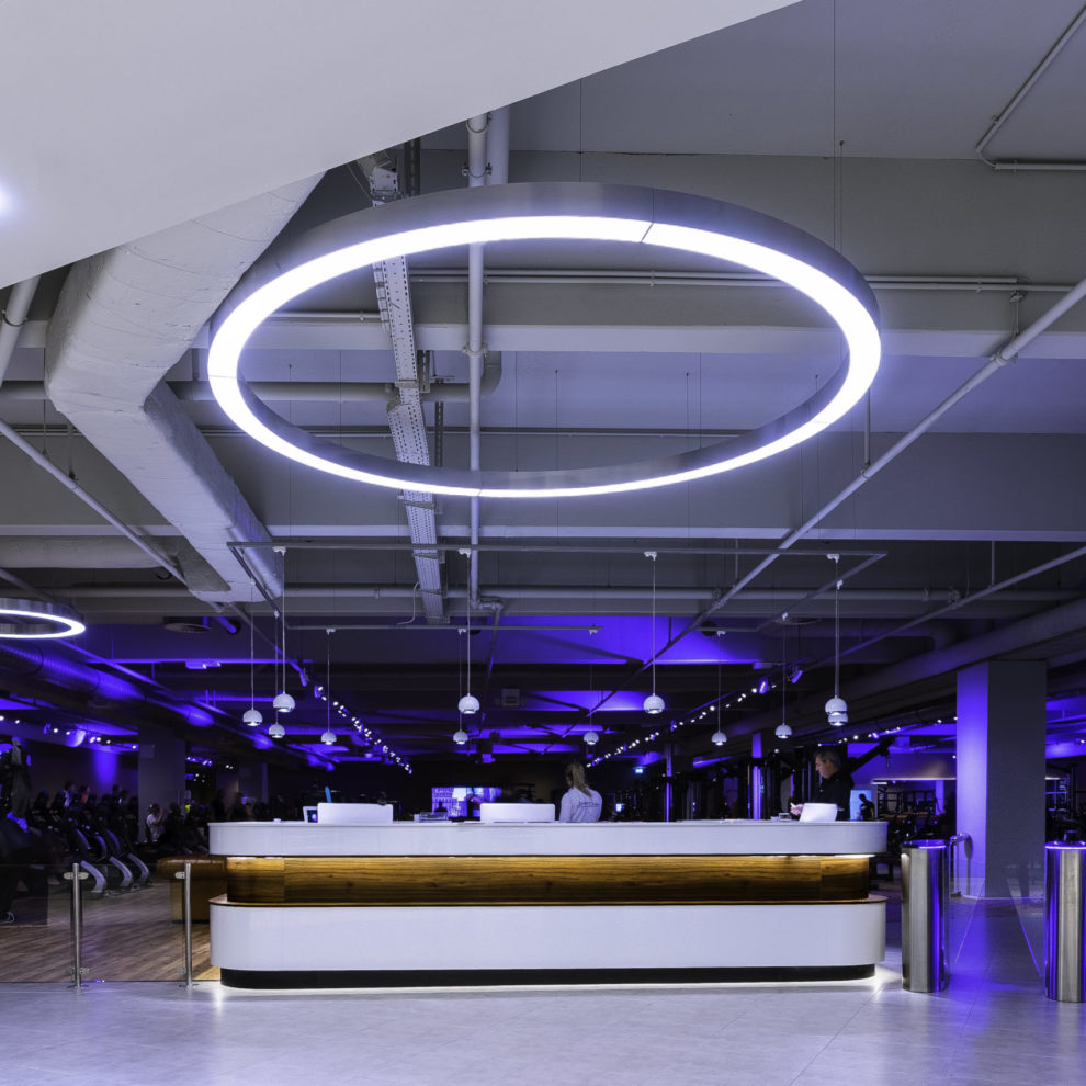 Die Ringleuchte ist eine beliebte Beleuchtungsoption, zum Beispiel für den Eingangsbereich, Lounges oder auch die Trainingsfläche. Vor allem große Ringleuchten sind Eyecatcher und bieten eine angenehme Ambientebeleuchtung. Es gibt sie in verschiedenen Größen und Farben, sie sind dimmbar und verleihen den Räumlichkeiten einen Hauch von Eleganz.